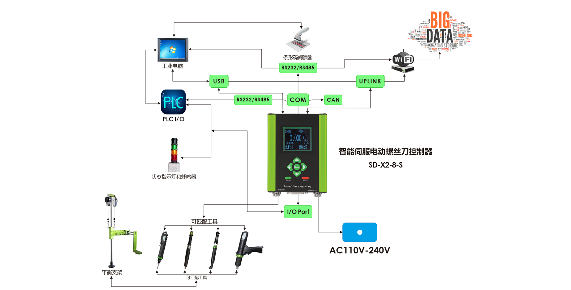將條碼掃描器與控制器連接,確保數(shù)據(jù)可追溯性,防止操作員可能存在的錯誤擰緊,可與生產(chǎn)管理系統(tǒng)進行無障礙連接,全面監(jiān)測生產(chǎn)過程;
