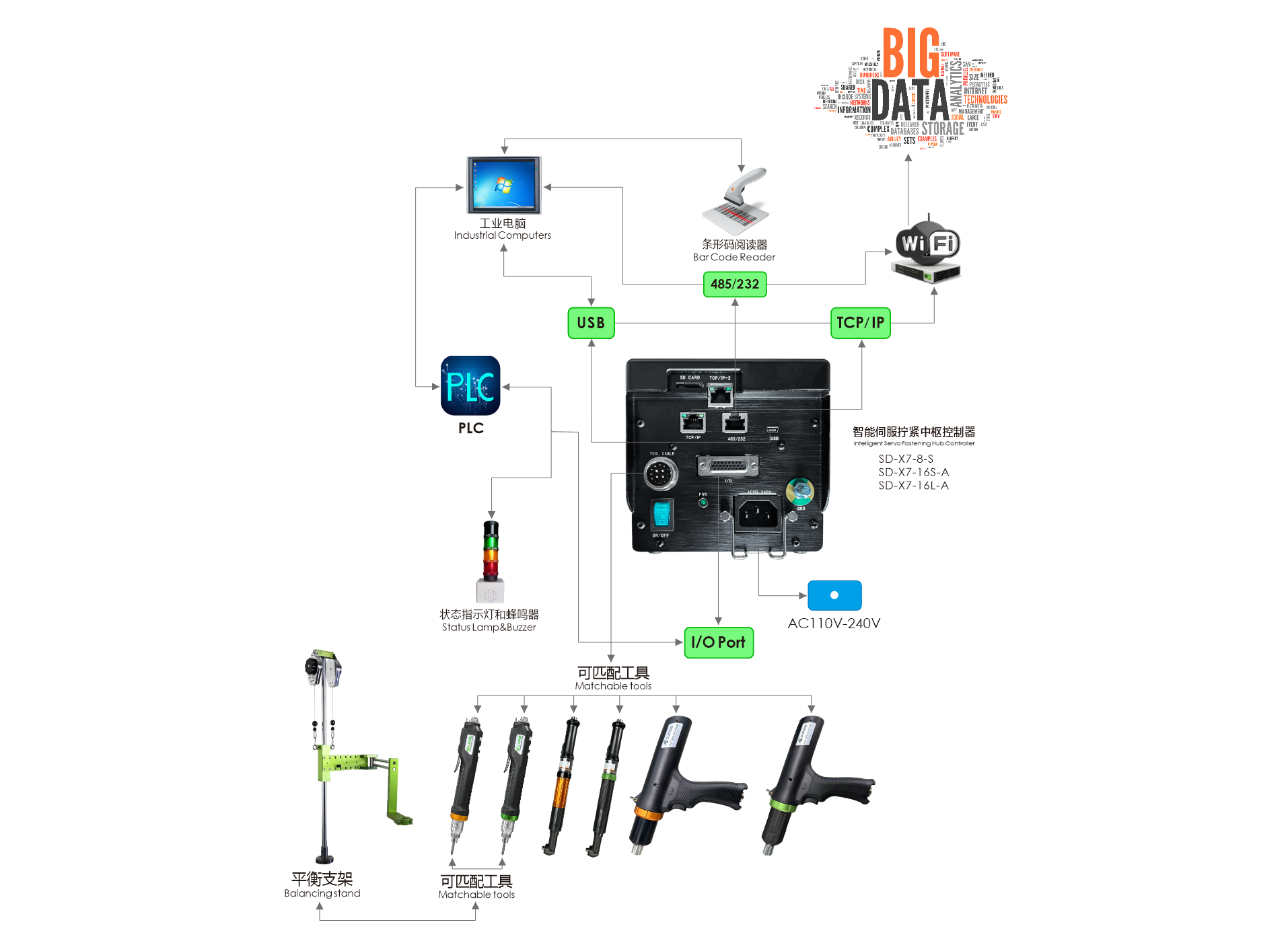 將條碼掃描器與控制器連接,確保數(shù)據(jù)可追溯性,防止操作員可能存在的錯(cuò)誤擰緊,可與生產(chǎn)管理系統(tǒng)進(jìn)行無障礙連接,全面監(jiān)測(cè)生產(chǎn)過程;