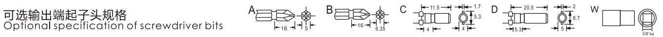 | 型號 | 扭力范圍 | 空載轉速 | 輸入電壓 | 重量 | 標準批頭 | |